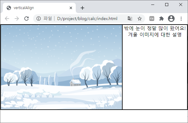 <div class="text_area">밖에 눈이 정말 많이 왔어요! 겨울 이미지에 대한 설명</div>