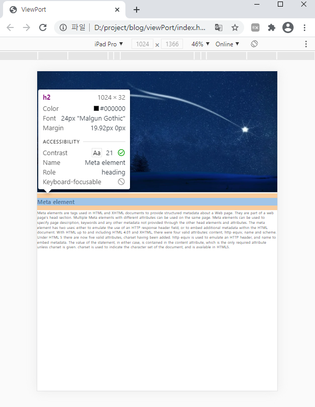그럼 직접 페이지를 만들어 보며 Viewport의 속성에 대해 알아보겠습니다.